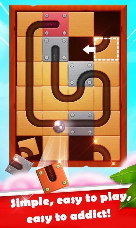 Move the blocks with your finger to create a path for moving the ball to the red GOAL block. But riveted blocks can't be moved. Are you ready to play? Download and start solving puzzles now!