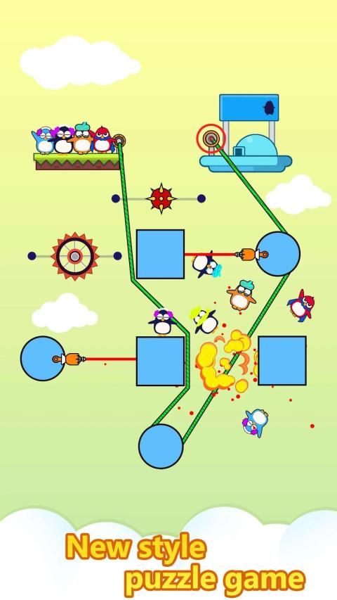 - Drag the zip line to make a safe path after that keep your finger on screen to rescue all stick men and penguins to safe place!