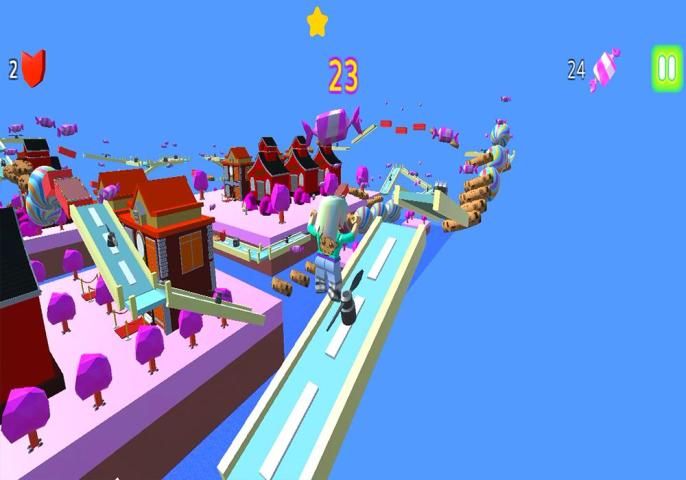 This game is easy to play you just have to run and stay away from obstacles as you can by avoiding them and collect candys on your way.