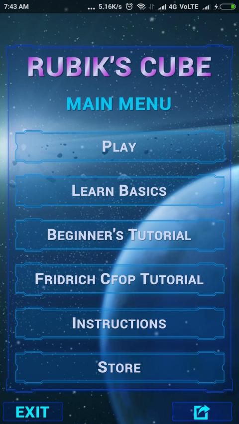All new exciting version of Rubik's cube. Play Mode for Free Practice. Setup Cases for solving 3X3 Rubik's Cube using Beginners Method and Fridrich CFOP. F2L Cases are included. OLL & PLL are setup to learn by practicing them. Notations can be executed directly from game play.