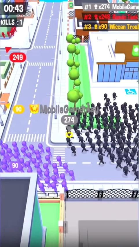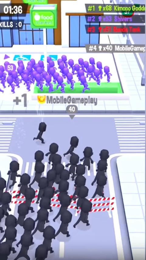 Running in the city to get more team members! Collect each of them on the map! Eliminate others from the smaller group to get them the same color as you! Make the strongest team in the city! The more people you get, the bigger your team becomes!