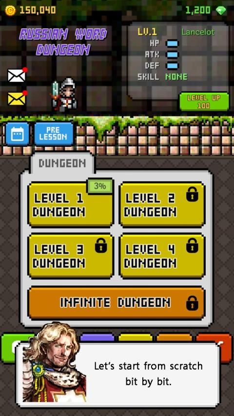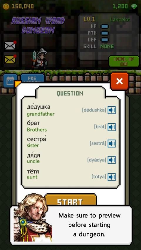 1. Level Dungeon: Anda dapat mempelajari kata-kata Rusia di level yang berbeda.
