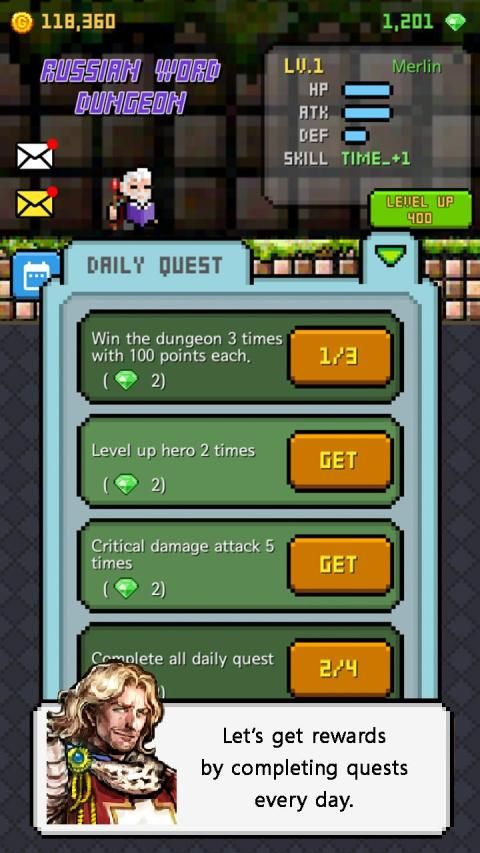 1. Level Dungeon : You can learn Russian words on different level.