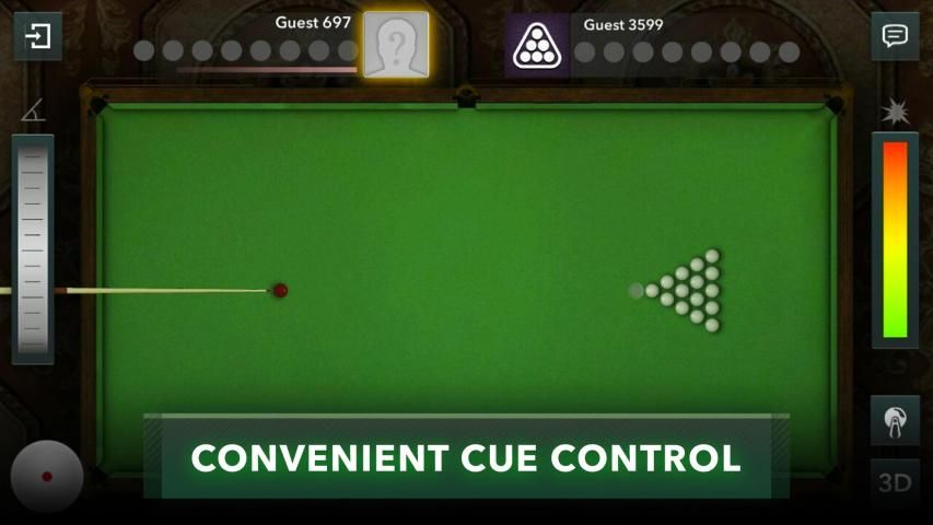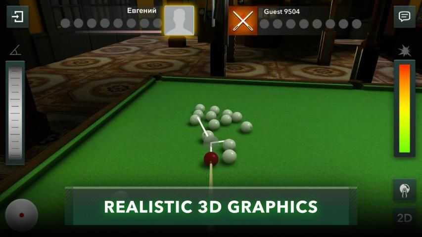 Ingin melihat seluruh meja biliar sekaligus atau lebih suka memainkan game online yang lebih realistis? Beralih antara mode 2D dan 3D saat memainkan snooker.