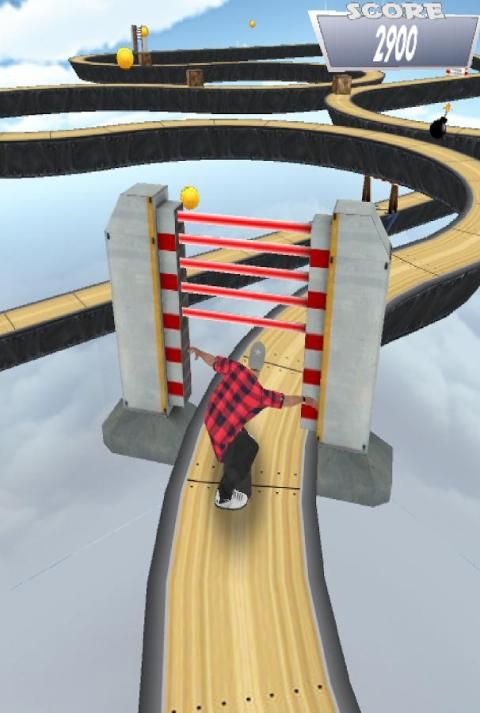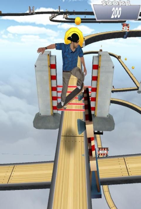Ride your skateboard Up High, Jump, Crouch and Turn thru a narrow path and try not to fall down!