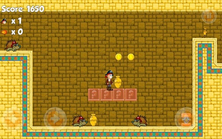 Permainan ini mudah untuk mengontrol seperti Jake bajak laut tapi sangat adiktif juga, sangat detail dari permainan platform retro terlahir di super Pirates Dunia. seperti melompat untuk menghancurkan musuh, memukul batu bata untuk melepaskan barang power-up, Jake dapat mengambil barang-barang sihir untuk menjadi salah satu yang lebih besar (burger, bisbol dan coke), kura-kura dan sebagainya geser. Fitur super awesome dan UNIK Super Pirates Adventure adalah dunia Dungeon tersembunyi. Sekarang, bermain sebagai Ted untuk menjelajahi dunia sihir, mengumpulkan sebanyak koin dan barang-barang sihir, kekalahan 10 + jenis musuh, hanya Langsung, Crouch, Power-Up, Api, Anda adalah pahlawan nyata ...