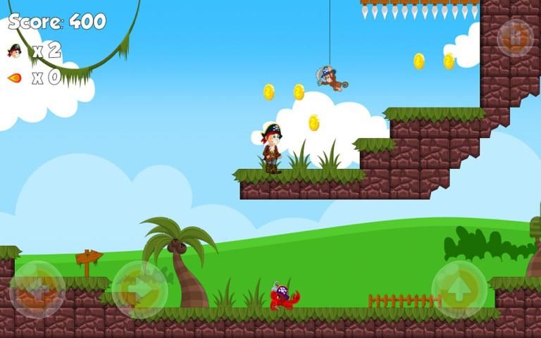 Super pirates World have to explore through eight worlds(Jungle world, Grassland world, Desert world, piramid world, Ice world, Volcanic world), survive from countless traps and enemies, collect coins, defeat crocodile, spider and frog. This game is one of adventure games that tells his super quest, which is a fantastic 2d side-scrolling platform game with the best sense of control and well-designed levels like star the bomb. You will face many cool obstacles like in super adventures that makes this adventure games really good for kid games too.