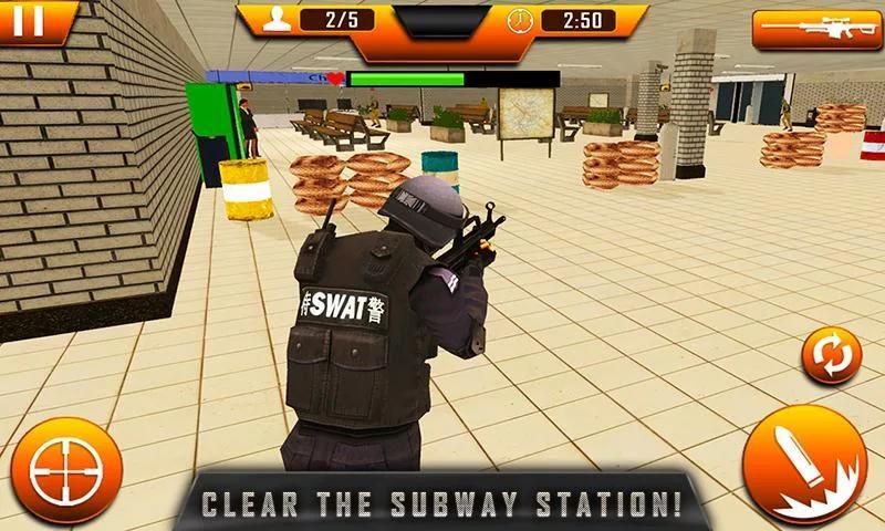 Orang jahat dilatih telah menangkap stasiun kereta api dan dibajak lokomotif setelah penembakan driver, sekarang mereka memiliki sandera sipil. Polisi kota telah meminta SWAT kekuatan bantuan sebagai situasi yang bermusuhan ini seperti perang sebelumnya. Stasiun kereta bawah tanah tampak seperti medan perang dikelilingi oleh tentara bayaran teroris. Kota ini penuh dengan teror dan ketakutan terorisme, warga yang tidak bersalah menangis untuk bantuan dan menunggu tim penyelamat tiba kereta bawah tanah. Memimpin tim penyelamat di SWAT kendaraan dan mencapai stasiun kereta api. Musuh jip diparkir di luar dan dijaga oleh pria bersenjata teroris. Mengambil pria bersenjata dengan tembakan sniper dari senapan serbu Anda dan meledakkan musuh jeep dan gudang. Membersihkan stasiun kereta bawah tanah bawah tanah sebelum teroris meninggalkan di kereta ke padang pasir. Setelah intens lintas menembak, membunuh semua orang jahat dan penumpang penyelamatan.
