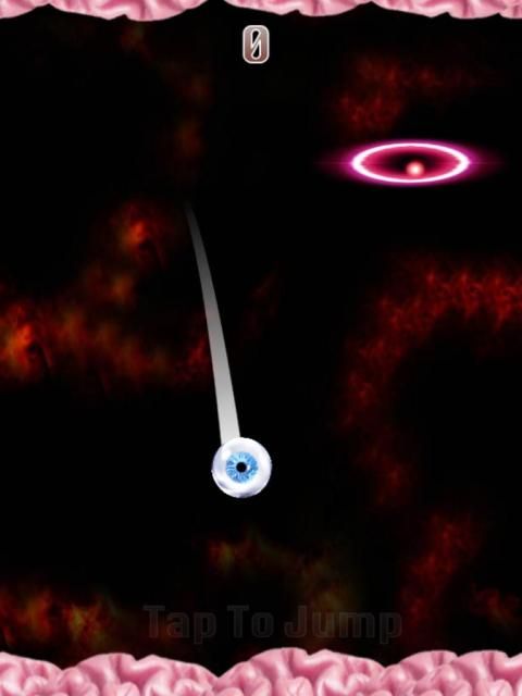 Salaman Eye keep jumping. Passing through the key ring, the big teeth of door will open. See how far you can jump.