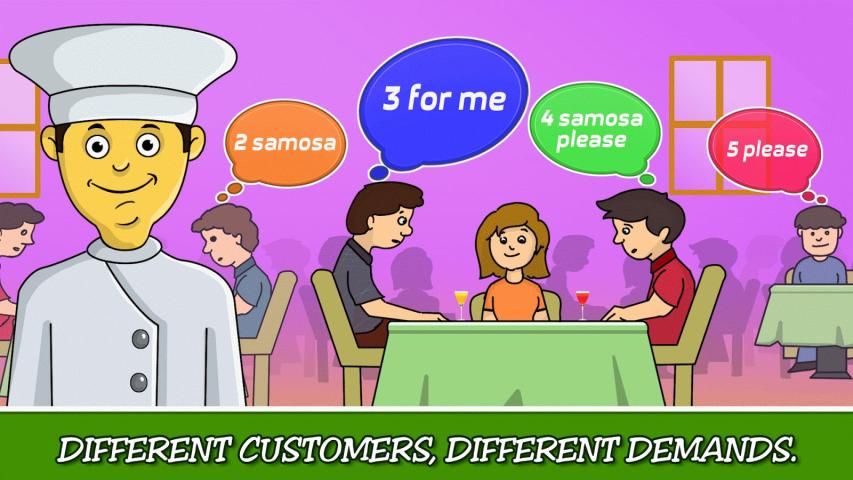 game ini murni difokuskan pada pembuatan samosa dan pengalaman permainan tidak diencerkan dengan membuat hidangan lainnya seperti makanan India Selatan. Permainan berasal kesederhanaan itu di sekitar meja bundar di mana pelanggan terus datang untuk dilayani makanan paling lezat. Inilah yang membuatnya menjadi permainan masak yang unik dan sederhana untuk anak perempuan & anak laki-laki. manajemen waktu menjadi sangat penting dalam samosa ini membuat permainan ketika ada kerumunan besar menunggu pesanan mereka harus dipenuhi. Untuk mendapatkan hal yang benar dalam permainan samosa ini, kita harus mengandalkan kecerdasan mereka dan refleks. Seperti banyak lainnya memasak dan melayani permainan, mendapatkan benar akan membantu dalam menjaga tingkat kepuasan pelanggan yang lebih tinggi yang merupakan kunci untuk game ini. Namun, jika kepuasan pelanggan Anda hampir habis, dapat membuktikan berbahaya seperti di kantin memasak permainan, pelanggan adalah elemen yang paling penting.