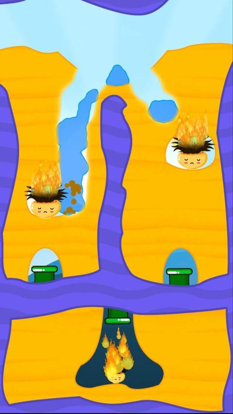 Permainan menggali pasir untuk menemukan sumber air dan memadamkan buah yang terbakar, permainan ini sangat unik dan lucu, karena Anda akan mengalirkan air untuk memadamkan api, bola-bola yang terbakar segera Anda keluarkan dengan air yang Anda gali.
