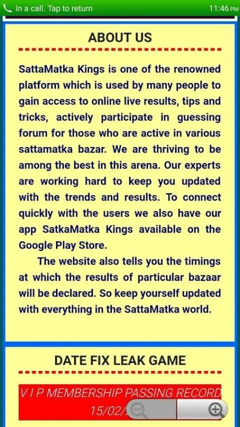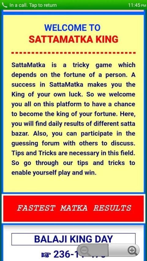 SattaMatka Kings adalah salah satu platform yang terkenal yang digunakan oleh banyak orang untuk mendapatkan akses ke online hidup hasil, tips dan trik, berpartisipasi aktif dalam menebak forum bagi mereka yang aktif dalam berbagai bazar sattamatka