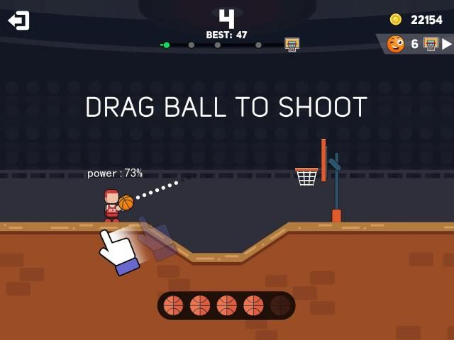 -Click on the little man on the screen, press and slide the screen to adjust the angle and strength of shooting.