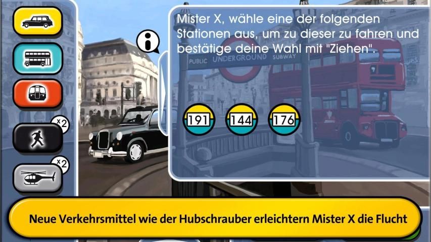 Zusammen mit dem Brettspiel bietet die App ein völlig neues und noch spannenderes Spielerlebnis. Die Detektive sind auf dem neuesten Stand der Technik und Mister X noch dichter auf den Fersen. In der digitalen Schaltzentrale finden sie alle wichtigen Infos: Mit welchen Verkehrsmitteln ist Mister X bisher gefahren?, wann muss er sich wieder zeigen?, welche Sonderaktionen können genutzt nutzen?