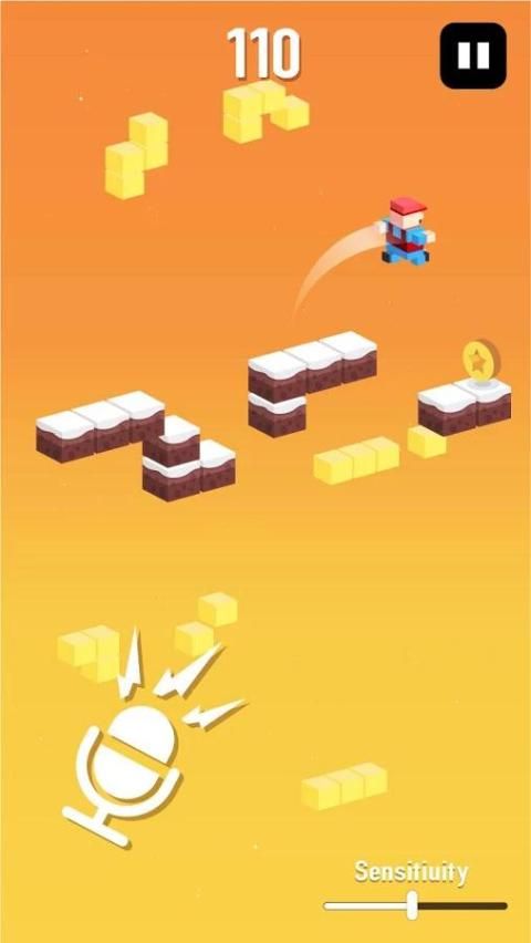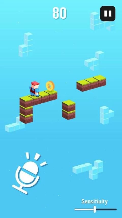 Use suara untuk mengontrol gerakan, lembut untuk pergi, berteriak untuk melompat.