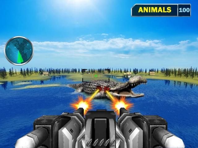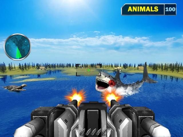 hiu menggembirakan dan buaya berburu ekspedisi dengan mesin menembak pembunuh