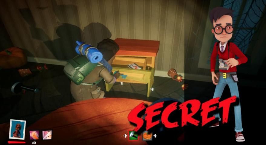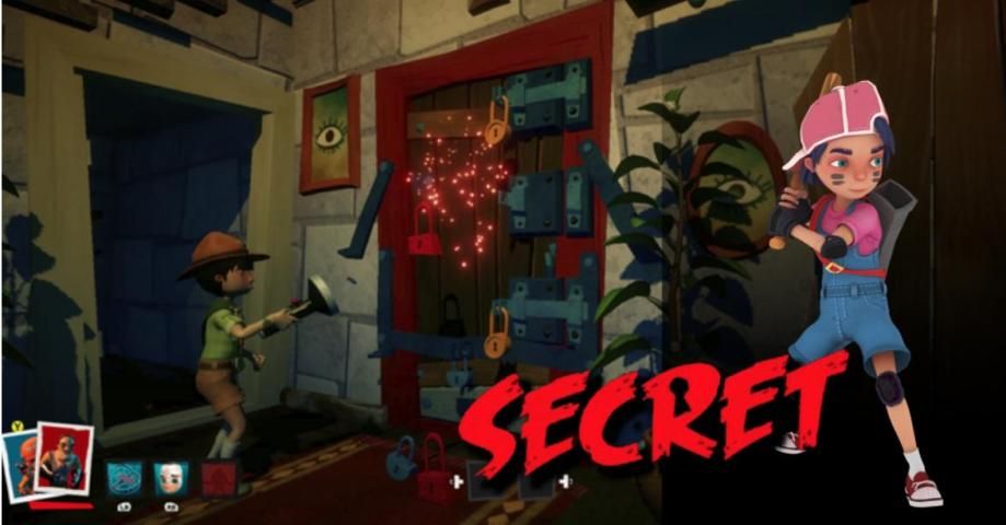 Tetangga menggunakan alat dan gadget untuk menjebak pemain lain saat mereka mencari kunci rumah untuk membuka kunci pintu ruang bawah tanah.