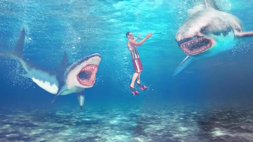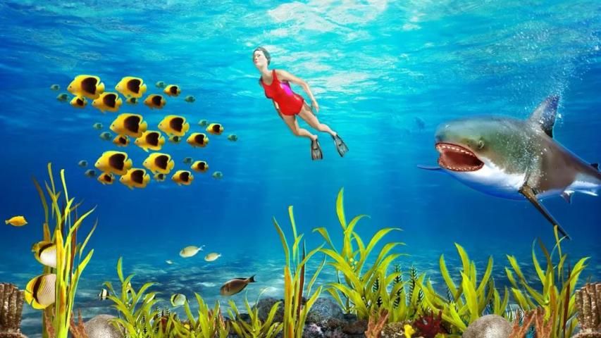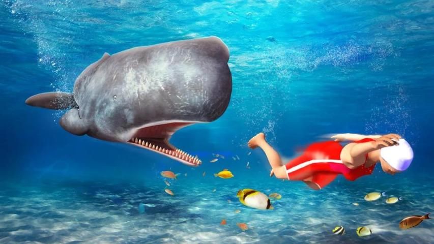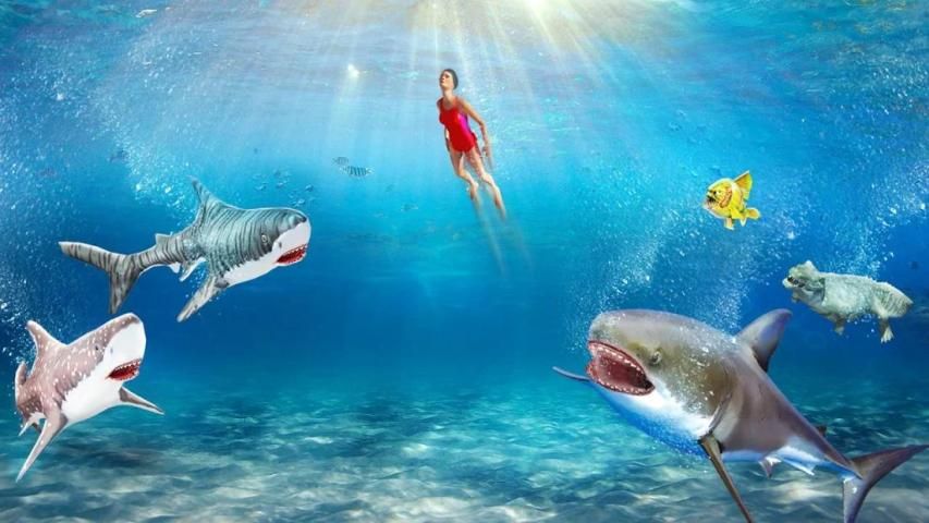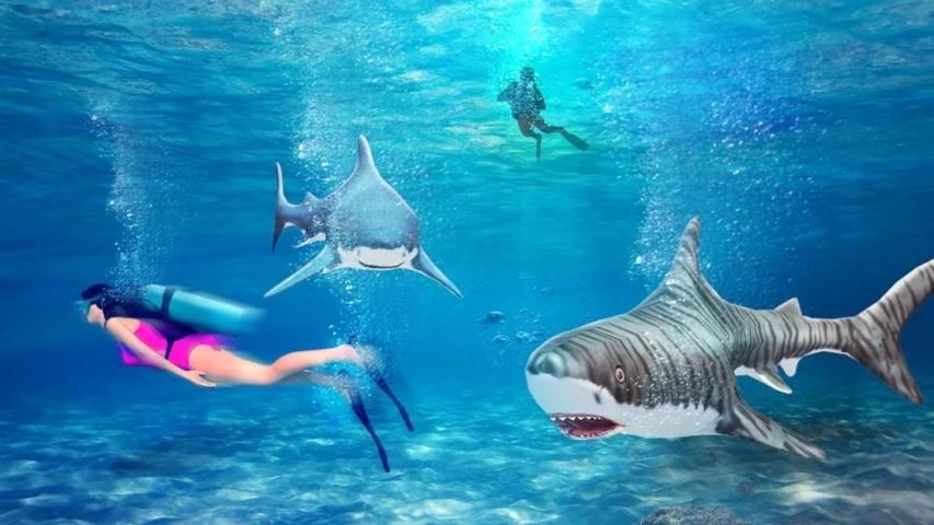 Experience shark survival game of hungry predator looking for baby shark and humans!