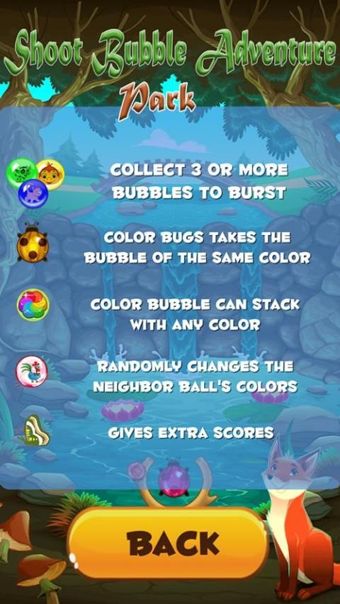 Untuk memainkan Tembak gelembung Adventure Park permainan, Sangat mudah !!! Hanya Anda membentuk kelompok 3 atau lebih gelembung dengan warna yang sama dan mereka akan dan Anda mendapatkan poin dan petualangan mengejutkan.