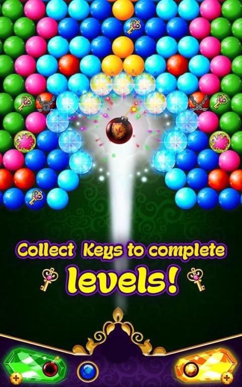 Mencocokkan setidaknya 3 gelembung dengan warna yang sama untuk pop dan mengumpulkan kunci untuk menyelesaikan tingkat!