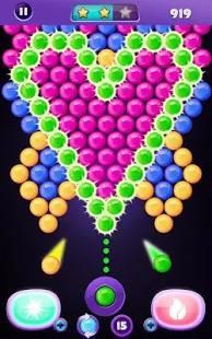 *Make combinations of 3 or more identically colored bubbles to pop the group and blast the bubbles away.