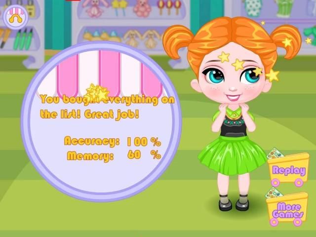 Bayi Lily bangun di pagi hari dan menemukan catatan dengan item belanja di lemari es dengan adiknya Linda. Linda meminta bayi Lily untuk pergi ke supermarket dan mendapatkan beberapa bahan makanan di daftar belanja. Bisakah Anda membantu Lily menyelesaikan tugas ini? Menghafal semua item pada daftar belanja dan mendapatkan mereka di supermarket. Waktu terus berlalu! Jika Anda membutuhkan petunjuk, klik daftar belanja dan mengambil cepat. Tugas berikutnya adalah untuk membayar belanjaan Anda. Tarik uang kertas dan uang logam dengan nilai yang berbeda untuk posisi yang benar dari kasir. Selamat bersenang-senang!