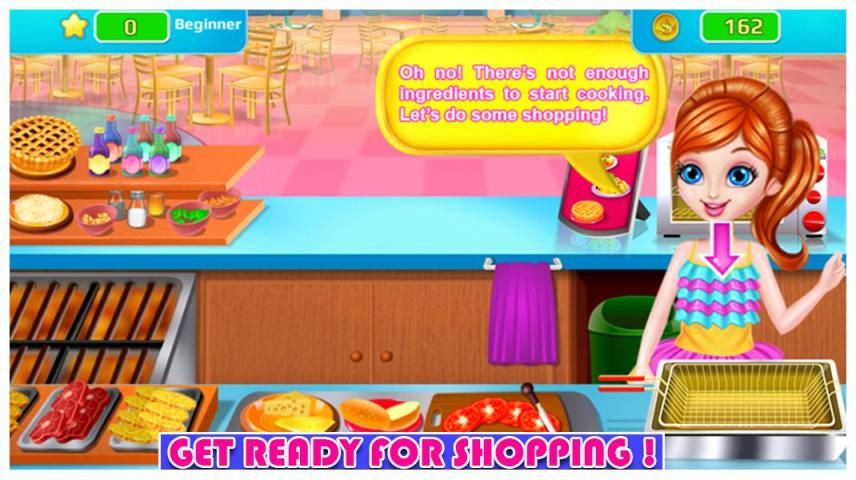 First, you have to go for supermarket and buy some kitchen items like fry pan, boil pan and spoons. And purchase all customers demanding food ingredients like potato, sauce, carrot, lettuce, onion, burger ban, corn, pizza base and mutton meat.