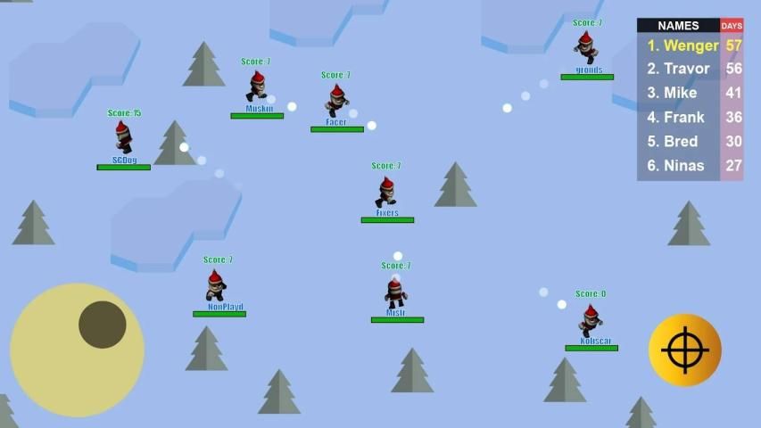 Pada awal permainan, karakter melompat keluar dari kereta luncur Santa Claus. Seperti dalam aslinya, tujuan utama adalah untuk bertahan selama mungkin dalam ruang terbatas dan mengalahkan 99 lawan. Alih-alih senjata disini bola salju, dan pada peta Anda dapat menemukan berbagai bonus dalam bentuk hadiah Tahun Baru.