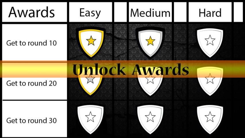 Membuka penghargaan. Di semua kesulitan, mengukur kemajuan Anda dengan penghargaan unlocking. Dapatkan berbagai Bronze, Silver, dan lencana emas menunjukkan bahwa Anda adalah seorang master sejati mengalahkan.