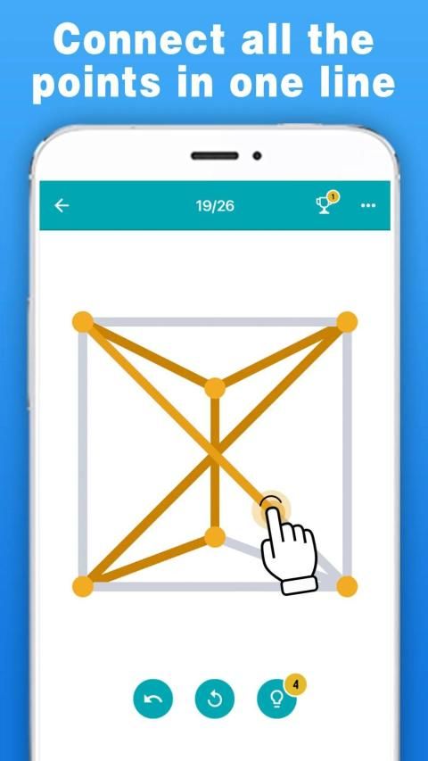 Ini adalah permainan menantang pikiran yang bagus dengan aturan sederhana. Hanya mencoba untuk menghubungkan semua titik dengan hanya satu pukulan.