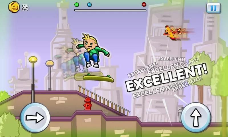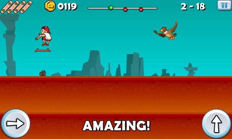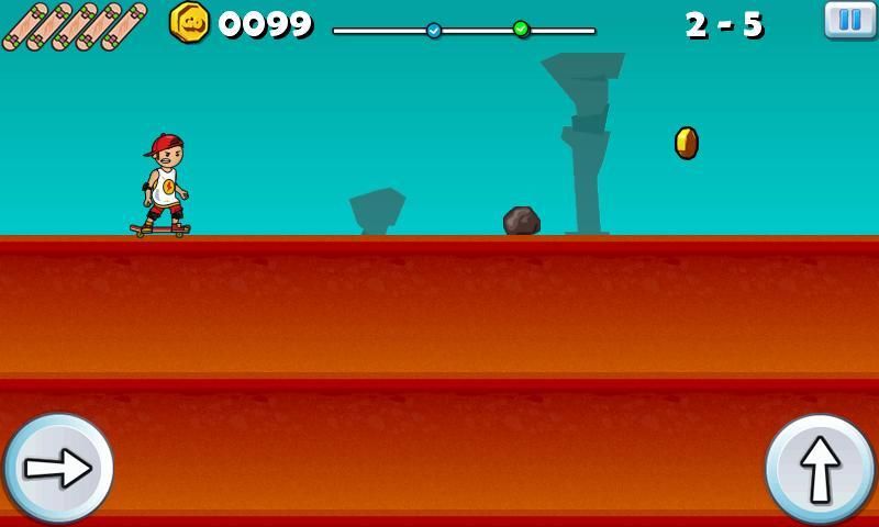 Go Pro in this amazing skating game! Grab your board and skate down 52 challenging levels. Tap to speed up and jump. Get as many coins as you can, and unlock more levels and new skaters. Feel the adrenaline of performing the craziest tricks during your rides. Get ready to have some of the most insane sessions in two different worlds.