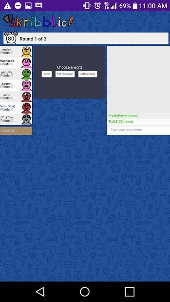 When its your turn to draw, you will have to choose a word from three options and visualize that word in 80 seconds, alternatively when somebody else is drawing you have to type your guess into the chat to gain points, be quick, the earlier you guess a word the more points you get!