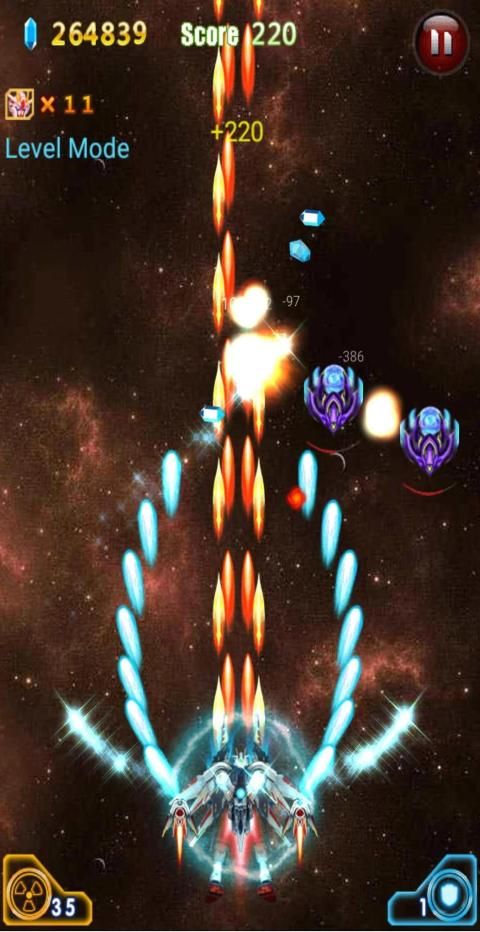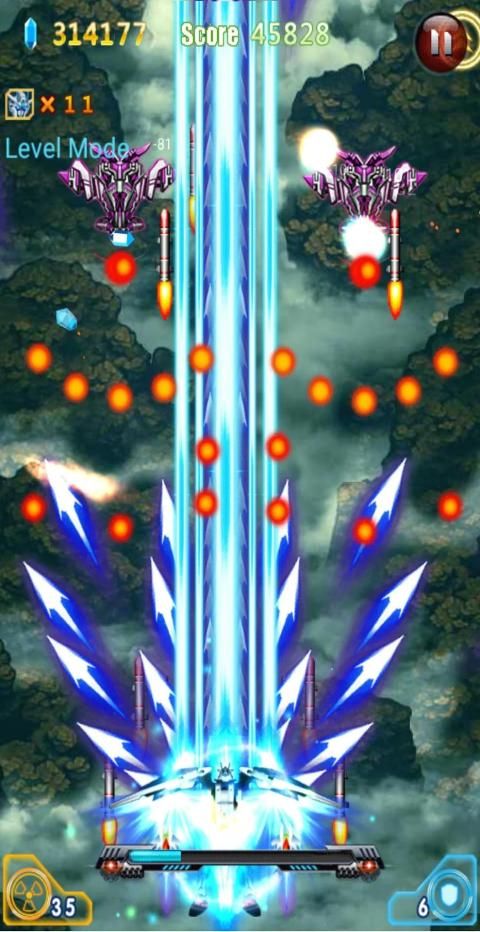 You can upgrade your aircraft squadron before challenge a new stage. Use your crystals get from stages wisely will help you a lot. Get your unique galaxy raiden force!