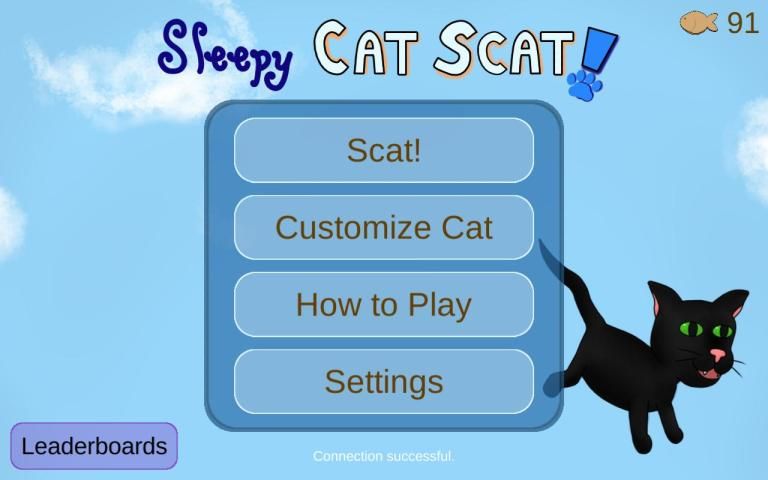 Sleepy Cat Scat is a challenging endless runner, where you have to dodge obstacles, or you'll fall asleep! Swipe and tap to avoid hammocks, benches, and flower pots as they appear on the screen. Aim for a high score on the leaderboards, or collect fish treats to unlock adorable clothing and customizations for your cat!