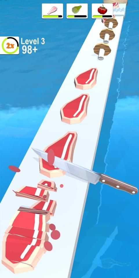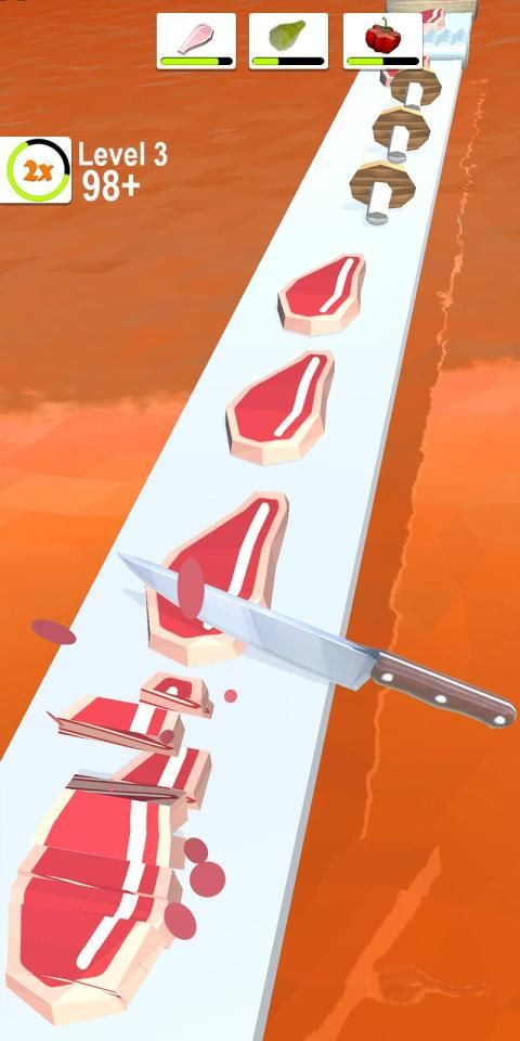 Cut all vegetables and fruit and become a true master chef. Very satisfy!