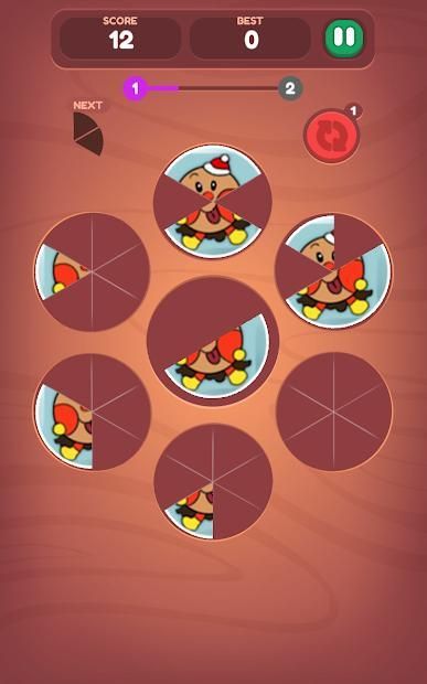 Ketika lingkaran penuh irisan, lingkaran akan meledak dan Anda akan mendapatkan skor.