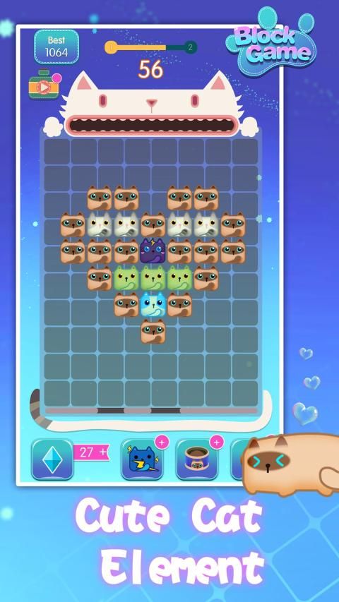 Gim eliminasi super imut, gameplaynya sangat sederhana. Geser ke kiri dan kanan untuk meledakkan, dan gerakkan kucing untuk mengisi dan menghapus seluruh garis. Ada juga berbagai alat peraga yang luar biasa untuk membantu Anda melewati badai.
