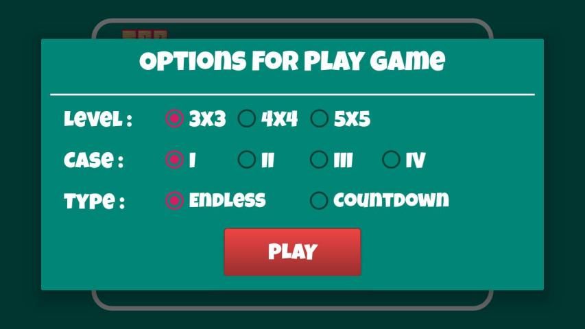 - Tiga ukuran papan: 3x3, 4x4, 5x5