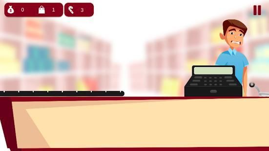 When the level starts, the shopping panel opens, where the player, if necessary, can buy bags and sweets. The cashier must serve customers, memorizing the prices of goods and putting them in mind, and then inform the amount of the purchase to the client. Having received money for the purchase, he must in his head count the change and give it to the client.To pass to another level, the cashier must serve all clients until their patient tolerance scale is exhausted. The scale can be reset using sweets.