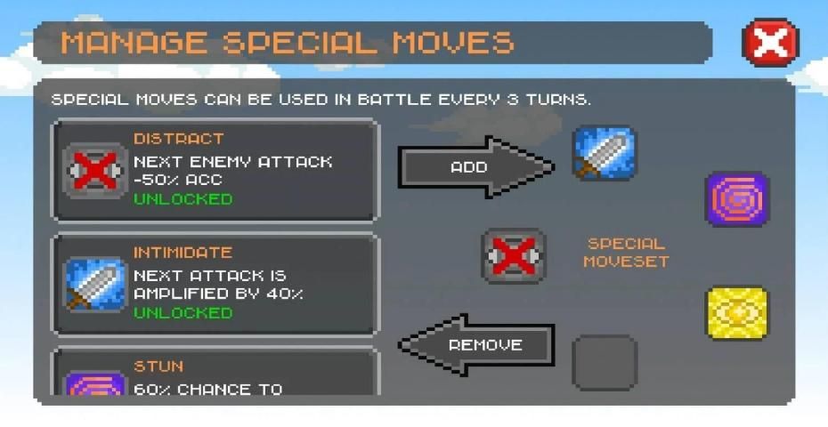 Special moves give bonus effects to the player's attacks or affects the enemy.