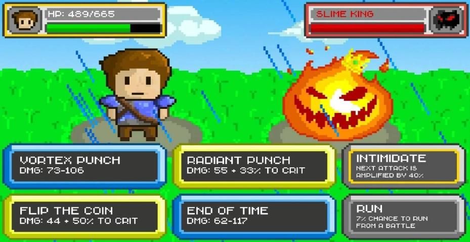 Dengan kontrol intuitif yang mudah, Anda tidak akan melihat bagaimana jam terbang saat Anda bermain pertempuran petualangan pixel.