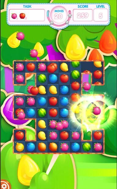 Match 5 fruits in a row to get a colorful rainbow ball.