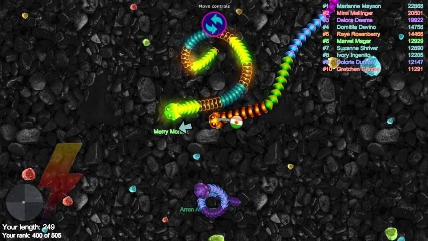 Watch out - jika kepala Anda menyentuh ular lain, Anda akan meledak dan setelah itu pengalihan atas. Jadilah bahwa mungkin, dalam hal bahwa Anda mendapatkan ular yang berbeda untuk tetap berjalan ke ANDA, pada saat itu MEREKA akan meledak dan Anda bisa makan bagian mereka yang tersisa!