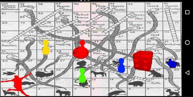 Permainan ini populer di India kuno dengan nama Moksha patam. Ini menekankan takdir, sebagai lawan game seperti Pachisi, yang berfokus pada kehidupan sebagai campuran keterampilan (kehendak bebas) dan keberuntungan. Permainan juga telah ditafsirkan dan digunakan sebagai alat untuk mengajar efek perbuatan baik versus buruk. Dewan itu ditutupi dengan gambar simbolik, bagian atas menampilkan dewa, malaikat, dan makhluk megah, sedangkan sisanya dari papan ditutupi dengan gambar binatang, bunga dan tangga people.The diwakili kebajikan seperti kemurahan hati, iman, dan kerendahan hati, sementara ular diwakili kejahatan seperti nafsu, amarah, pembunuhan, dan pencurian. Moralitas pelajaran dari permainan adalah bahwa seseorang dapat mencapai keselamatan (Moksha) melalui berbuat baik, sedangkan dengan melakukan salah satu kejahatan akan mewarisi kelahiran kembali menurunkan bentuk kehidupan. Jumlah tangga kurang dari jumlah ular sebagai pengingat bahwa jalan yang baik jauh lebih sulit untuk menapak dari jalan dosa. Agaknya, mencapai 100 mewakili pencapaian Moksha (pembebasan spiritual).