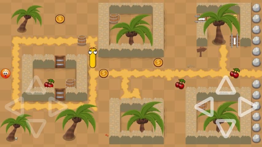 Bantuan Snaeky, ular dan protagonis kita, menang dengan makan semua buah pada setiap tahap dan mendapatkan skor yang lebih tinggi dengan mengumpulkan koin.