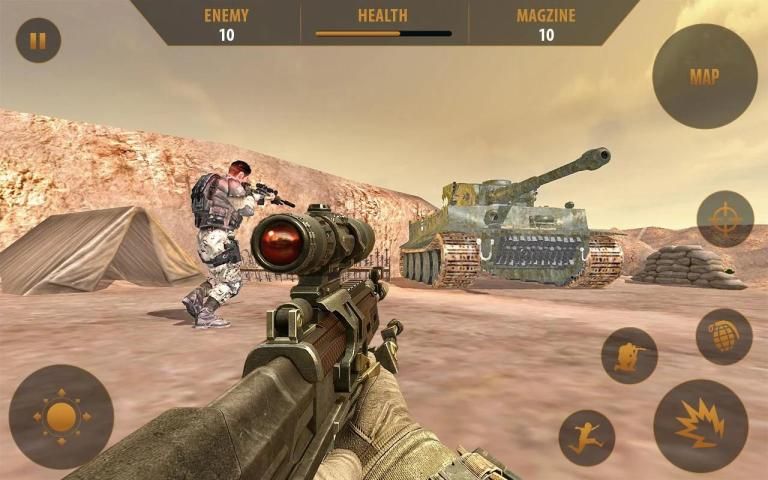 Serang dengan semua yang Anda dapat menembak dengan marah untuk mempertahankan diri dari penyerang musuh. Pelajari arti sebenarnya dari pertempuran di medan perang penuh aksi di mana satu-satunya kesempatan untuk hidup adalah bertahan dari misi berbahaya! Menyebabkan kerusakan dengan senjata sniper yang Anda miliki dan bertahan dalam uji coba yang menantang dari game aksi fps desert top baru ini.