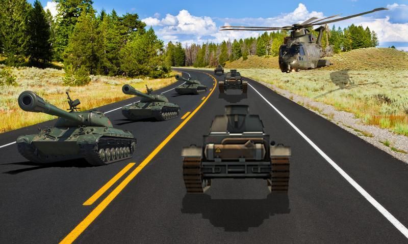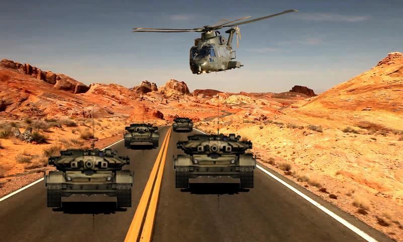 Tank, jeep antipeluru, dan helikopter untuk menembak