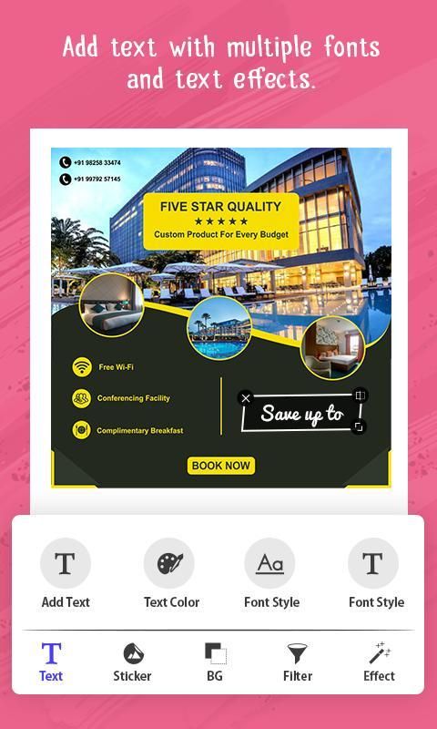 In social media post maker you can create any product sale post instantly with perfect blend and choice of graphics. Just add your business logo on the post and add your product details.