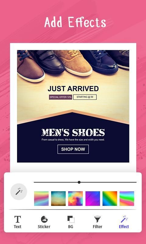 - Choose from 50+ backgrounds, or give color or gradient in background.