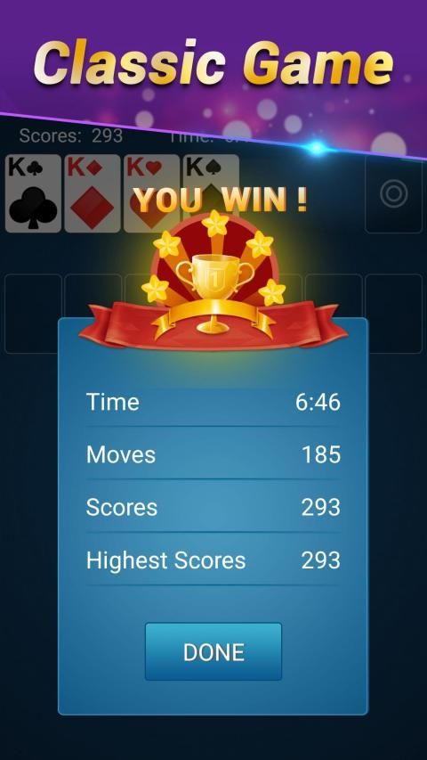 The rule is simple, move cards with a single tap or drag them to their destination. You will win when the cards are put with the order from A to K. Try your best to be the winner, enjoy the leisure time with the classic card game.
